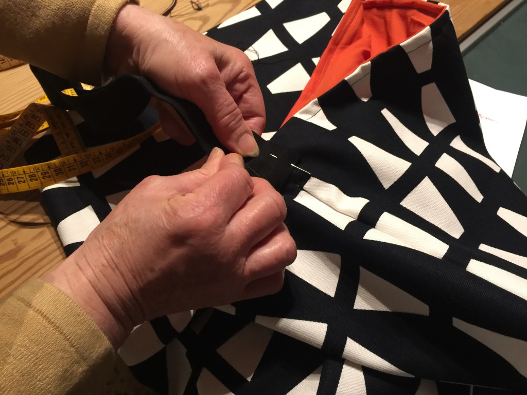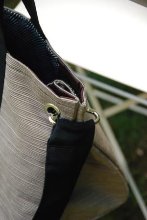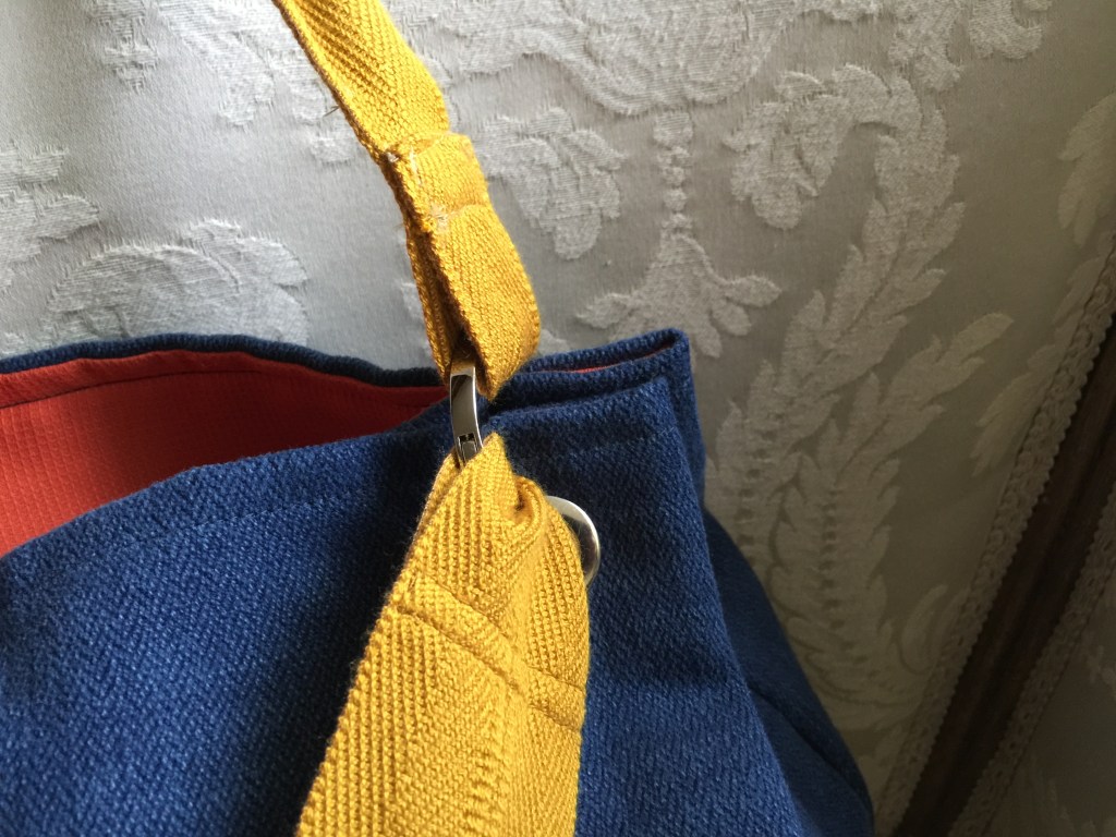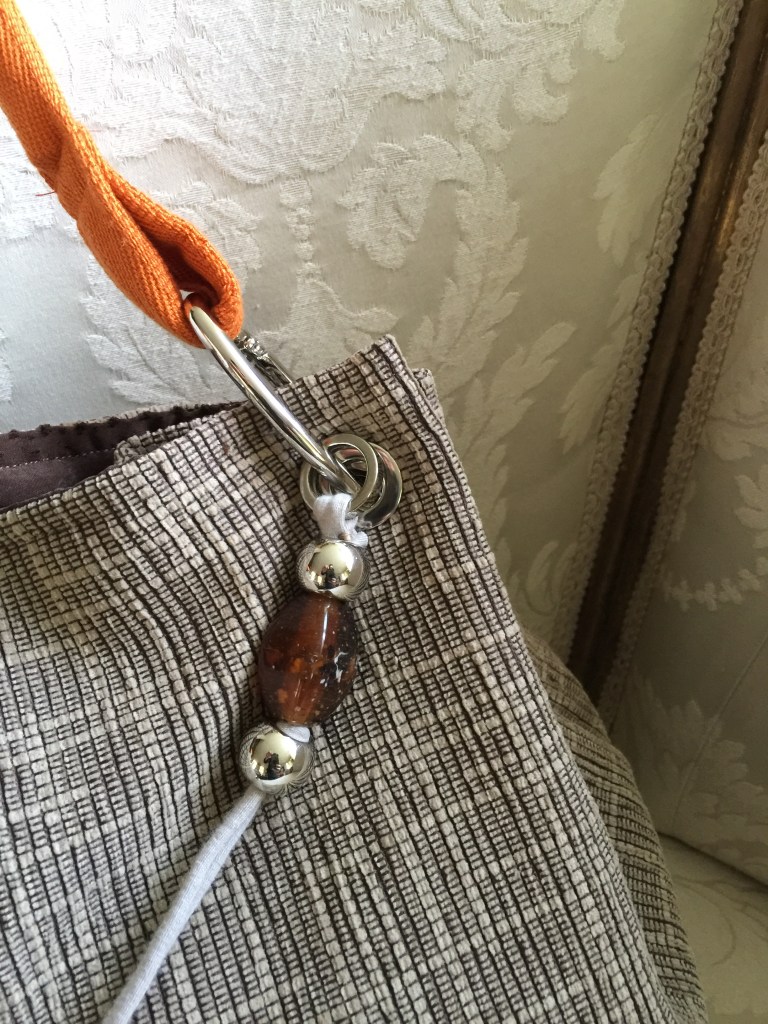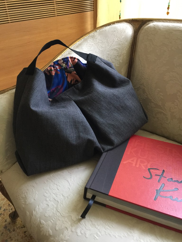 MODELLO SOFIA – borsa realizzata a mano in tessuto per arredamento, impugnatura con fascia in nylon interno con fodera in seta